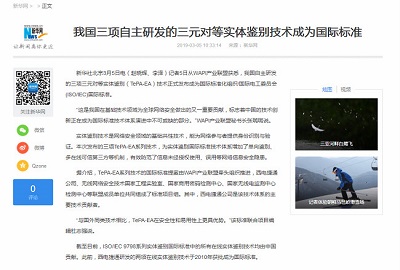 來(lái)自(zì)新華社:我國(guó)三項自(zì)主研發的(de)三元對(duì)等實體(tǐ)鑒别技(jì)術(shù)成為(wèi)國(guεó)際标準